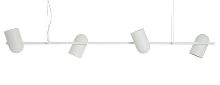 Cúpulas pousam delicadamente na linha em que é transmitida a energia. Um único elemento de ligação as conecta e articula. A luz direcionável em 360º pode transformar efeito no ambiente. Se viradas para cima, rebatem no teto emitindo uma luz difusa.